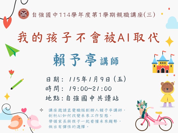 【輔導處】1/9(五)親職講座(三)我的孩子不會被AI取代